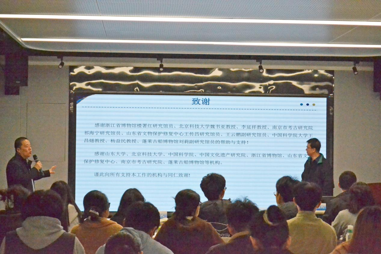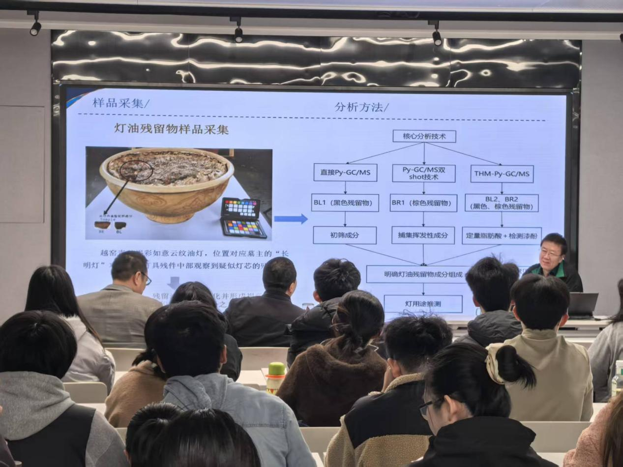In his lecture, Professor Ma used vivid case studies to outline the research trajectory of organic materials excavated from the Tang to the Ming–Qing dynasties. Covering topics such as lacquerware remains, the evolution of aromatic substances, and relic-offering traditions, he followed a clear analytical path from sample collection to research conclusions. Integrating cutting-edge analytical technologies with historical evidence, he demonstrated how organic chemistry in cultural artifacts can serve as a key to understanding ancient daily life. He further expanded the discussion by connecting his research on Penglai Water City to topics such as organic additives in architectural painting and the application of PEG in ancient ship conservation. He explained both the physicochemical properties of these organic materials and their identification and conservation practices.