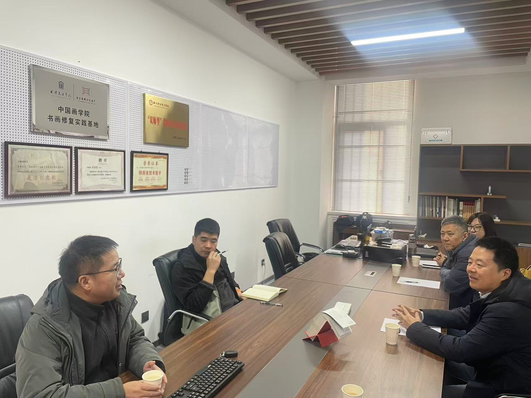 为进一步深化院企合作,拓宽就业渠道,共促人才培养高质量发展、1月23日,学院党支部(直属)书记王宝宏、院长杨璐、党支部(直属)副书记刘园、团支部(直属)书记刘扬一行赴西安鼎铉文化遗产保护有限公司“访企拓岗”专项活动。 活动中,西安鼎铉文化遗产保护有限公司总经理刘存良对学院一行的到来表示欢迎,对学院在文化遗产保护领域的人才培养成果予以高度肯定。他重点围绕公司发展定位、组织架构、业务范围、承担项目、岗位需求等方面进行系统、详细介绍,并对双方在下一阶段就深化院企合作、拓展实践实习、加强人才共育和完善就业机制等方面提出了具体想法和建议。